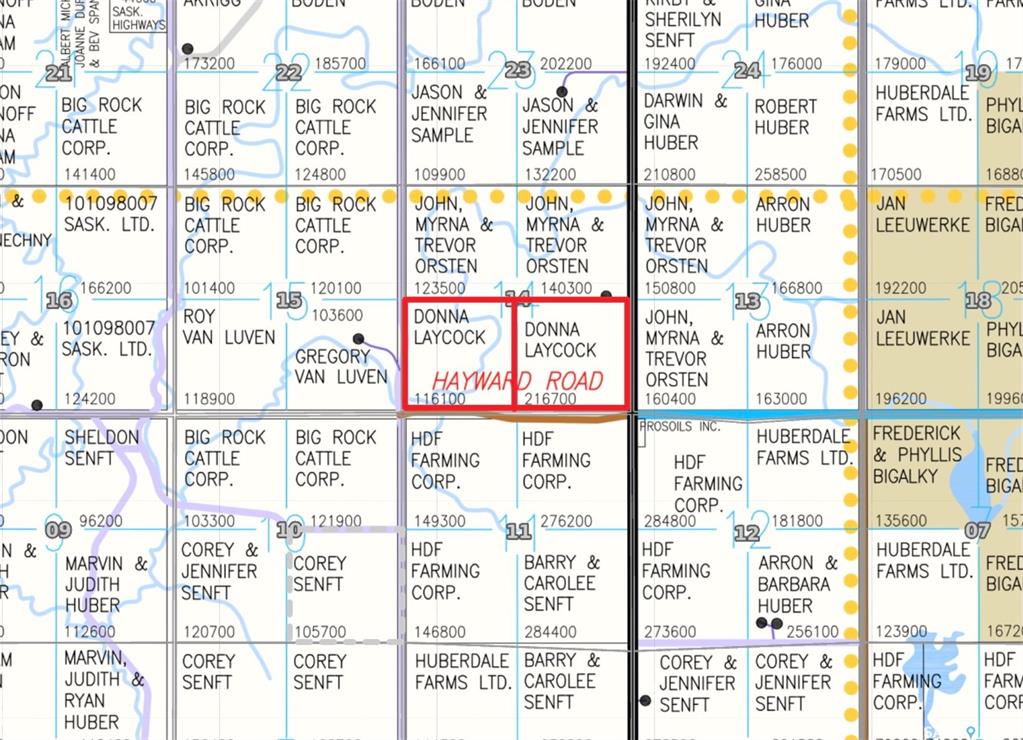 利普顿以北3英里处沿35号高速公路的两个块路段。14-23-14-W2的西南是一个美丽的牧场,有一条小溪穿过,用倒刺铁丝网围起来,至少有10英亩的可用土地。种植14-23-14-W2的SE,评估额为$310,800。根据萨省农业保险公司,牧场为L土类,耕地块为J土类。SW(牧场)块的估值为加币200,000,SE的估值为加币520,000(1.67倍估值)。