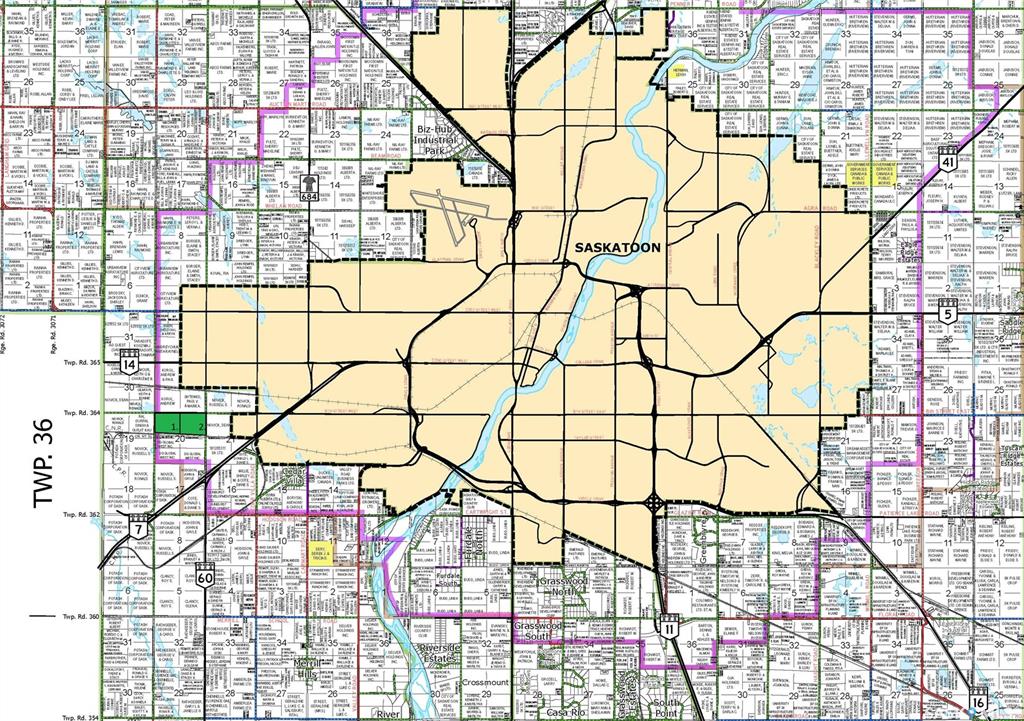 265 Acres – Prime Farmland & Former Feedlot – Just West of Saskatoon, SK An exceptional opportunity to acquire 265acres of grain farmland located just ½ mile from the west boundary of Saskatoon. This versatile property offers agricultural potential, valuable infrastructure, and a prime location for investment or development. This property is ideal for continued agricultural use, agribusiness expansion, or investment purposes. With city water, rail access, and proximity to major industrial operations, this is a rare find near Saskatoon. Property Highlights: • 265 acres currently in grain production; historically used as a feedlot. • Independent city water line to the property. • 3-phase power available adjacent to the land. • CN Rail line borders the south side of the property – ideal for logistics or agribusiness. • Located just south of DG Global West Inc., and only 1.5 miles from the PotashCorp mine entrance. • Paved access from the north via Twp Rd 364. • Excellent proximity to Saskatoon – easy access via 11th Street West and Hwy 7. Residence &Outbuildings: • Bungalow Residence (1,274 sq. ft.), built in 1940, includes a 17.5' x 27' attached garage. • Red Barn / Shop (40’ x 90’plus 27’ x 14’ addition), asphalt shingles, cement foundation & floor, 110V and 220V power, propane forced-air heat, divided into 4 main floor rooms, with solid upstairs loft designed for heavy storage, reinforced metal-sheet flooring – ideal for equipment or grain storage •White Barn (34’ x 128’), asphalt shingles, cement floor, includes power and partial hay loft • Guard House (20’ x 20’), stucco finish, metal roof, power, currently used for storage Numerous additional outbuildings, corals, and cement slabs provide flexibility for livestock, equipment, or future development (no added value).