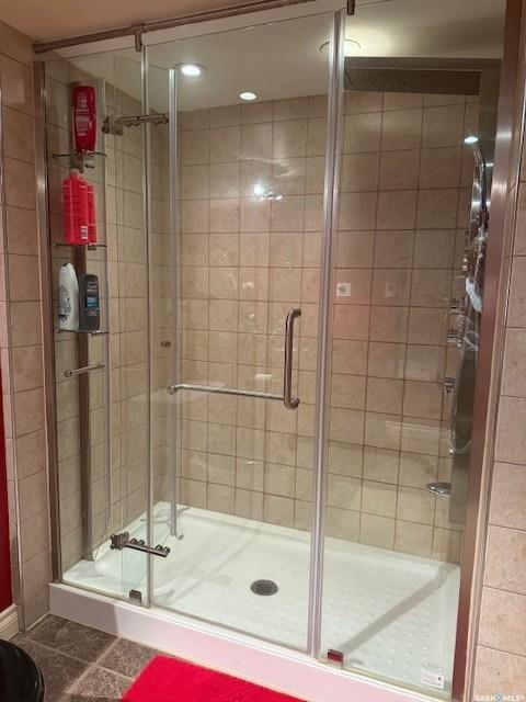 A large porch connects to a utility area and bathroom for added convenience. The lower level provides considerable living space, featuring a spacious family room, open areas perfect for a gym or office setup, and a generously sized bathroom with a walk-in shower.