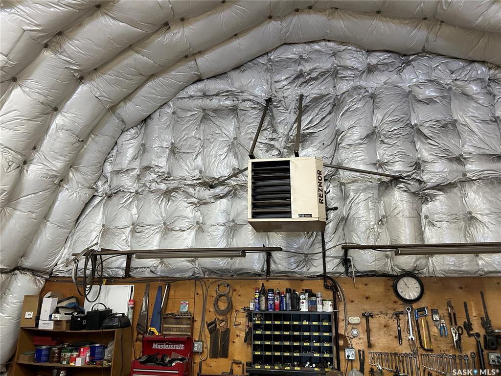 Workshop, 30’x60’ archrib style, metal exterior, concrete floor, unit heater, 14’ high overhead door.