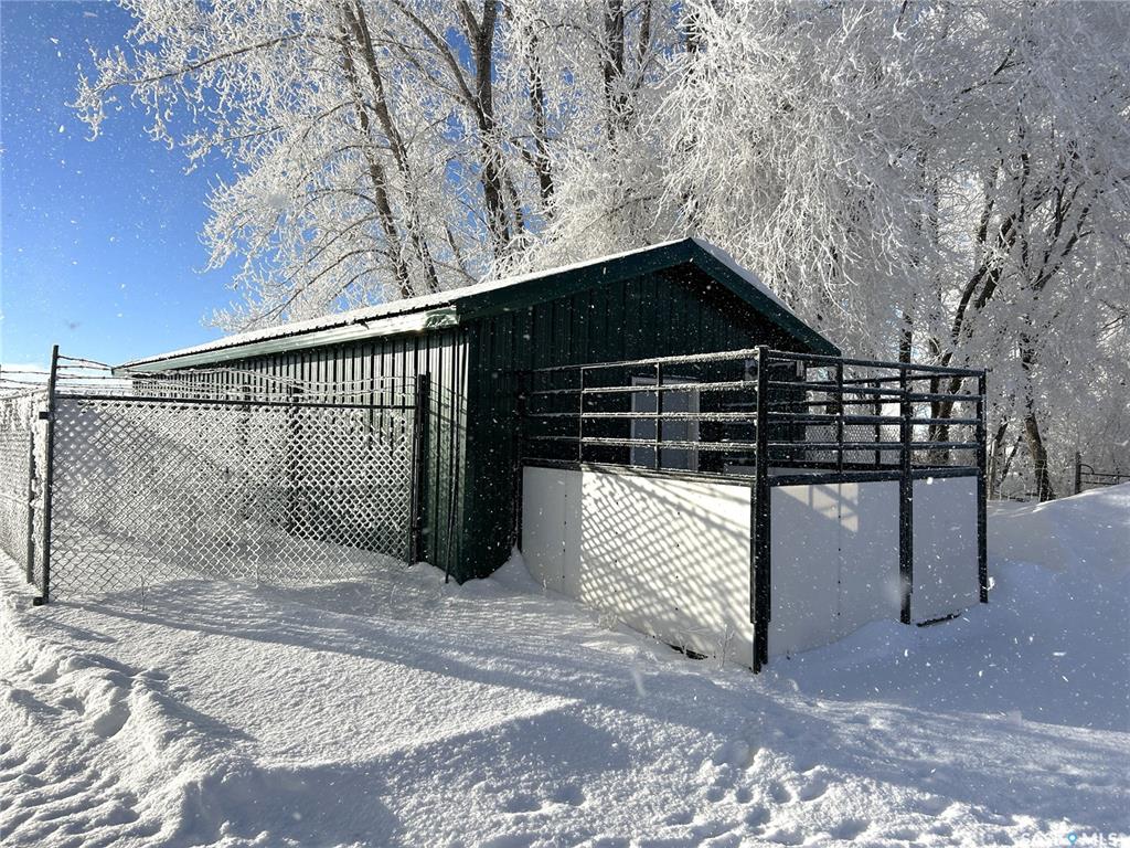 Located just south of Lanigan and east of Watrous and nearby Manitou Beach, this half section has a very well-treed yardsite, with modern dwelling, riding arena, workshop, barn, cold storage building and a heated kennel that has a long list of clients if you wish to continue boarding dogs.