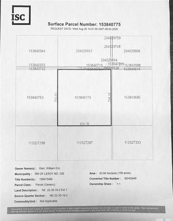 Prime Saskatchewan Farmland — 623 Acres (607 Cultivated) Excellent opportunity to add scale with a highly workable block of farmland in the LeRoy area. The package includes three adjoining quarters in the RM of LeRoy, plus one quarter in the RM of Lakeside approximately 3 miles away. Total land base is 623 acres with approximately 607 cultivated acres, offering an outstanding cultivated ratio. Soils consist of Class D & F within the Yorkton/Naicam and Cudworth soil associations, featuring loam to silty clay loam. The land is table-top level with minimal to no stones, allowing for efficient equipment operation, consistent seeding depth, and smooth harvesting. Large, open fields with excellent runability make this land well suited for modern farming equipment. A strong opportunity for producers looking to expand with clean, productive, easy-to-farm land in a proven agricultural district. FORM 917 - There shall be no presentation of offers as per Seller's instruction until 5:00 p.m. on February 02 2026. Please leave all offers open until February 4 2026 at 8:00 p.m.Call today for more information!
