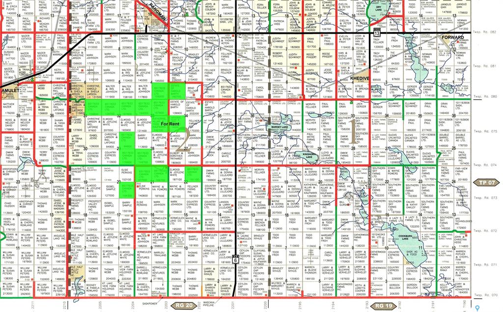This very attractive package of 14 grain farmland quarters is located just south of Pangman, SK. Farmland & Price Summary 14 parcels 2,198 title acres (ISC) 2,034 Vendor stated seeded acres SAMA Information 2,203 total acres 1,739 cultivated acres 292 native pasture acres 189 wetland/bush acres $3,191,800 total 2025 assessed value (AV) $231,815 average assessment per 160 acres 44.2 soil final rating (weighted average) $5,600,000 Farmland Price $2,548 per title acre (ISC) $3,220 per cultivated acre (SAMA) $2,753 per cultivated acre (Owner) 1.75 times the 2025 assessed value (P/AV multiple) Vendor’s yard (approx.10 acres) in NE 21-7-20 W2 will be subdivided off including all buildings. Vendor is also going to subdivide and keep 10 acres along the east side of the NE 29-7-20 W2, the cost for subdivision will be paid by the Vendor. The sale closing for NE 21 and NE 29 will be once the subdivision is completed. Vendor is also keeping NW 33-07-20 W2 Ext 2, Surface Parcel 166037159 (1.73 acres). Steel bins on SW 28, NE 21, & NE 33 (10,000 bushels hopper and 20,000 bushels of flat bottom) are not included in the sale and to be removed. Lease Opportunity: The following land are to be rented by the Purchaser for 2026 crop year at $85 per Vendor's cultivated acres. Vendor states that there are 455 cultivated acres. RM 69 SE 33-7-20 W2, SW 34-7-20 W2 & SE 2-8-20 W2.